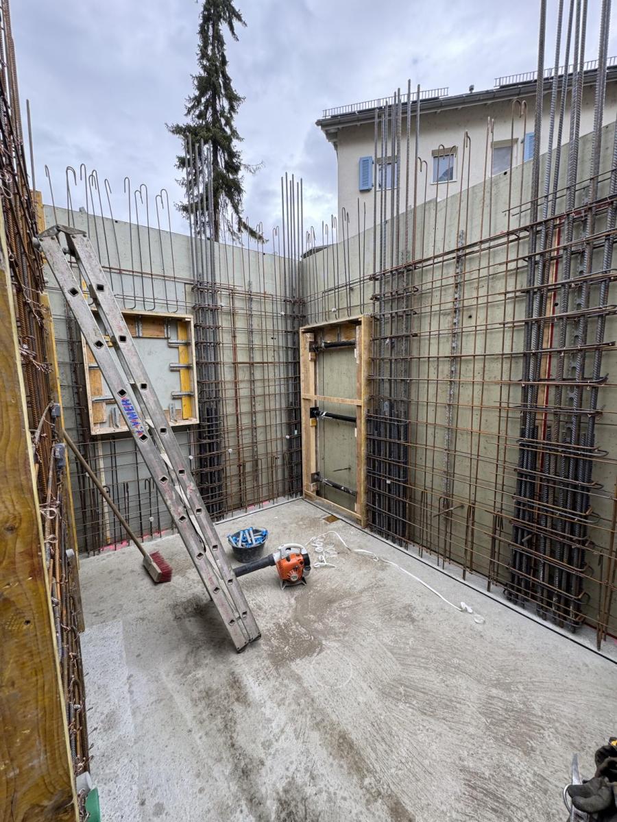 Hier waren wir an einem MFH für 4 Familien beteiligt. Unser Auftrag bestand darin, das unterste Geschoss in Beton zu erstellen. Dort wurden Garagenboxen, Keller & technische Räume etc. erstellt. Ein weiterer Teil unserer Arbeit, einen Liftschacht rund 15 Meter in die Höhe zu bauen, der die einzelnen Wohnungen erschloss. Nach Abschluss des Rohbaus, durften wir auch die Umgebungsarbeiten ausführen.